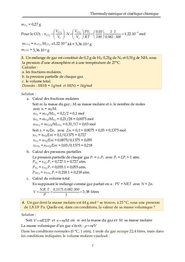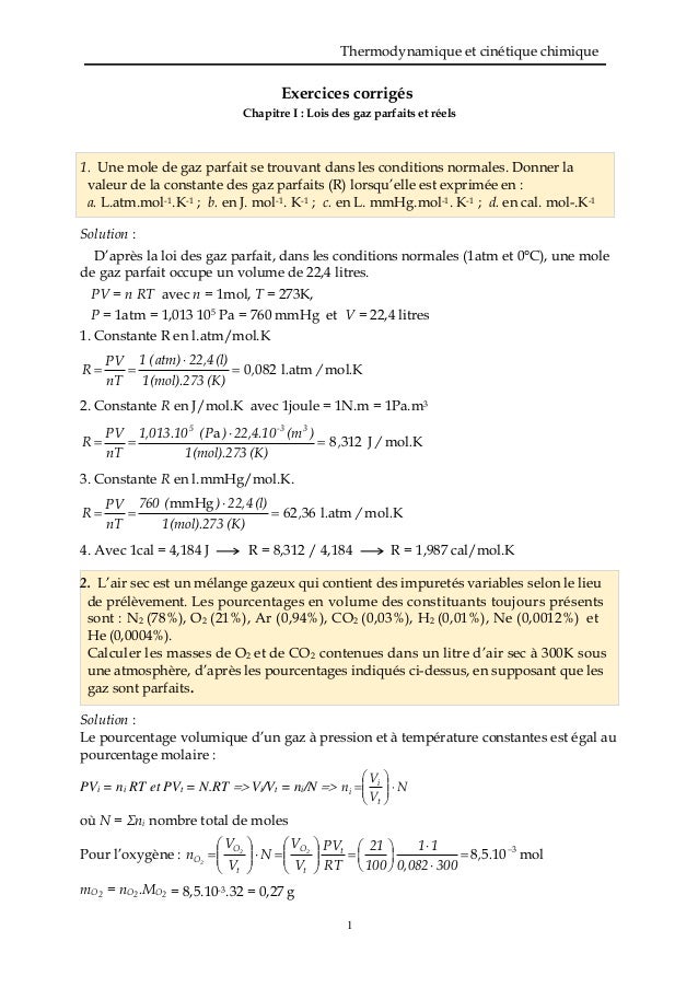 Exercices Corriges Chap1 Lois Des Gaz Parfaits Et Reels