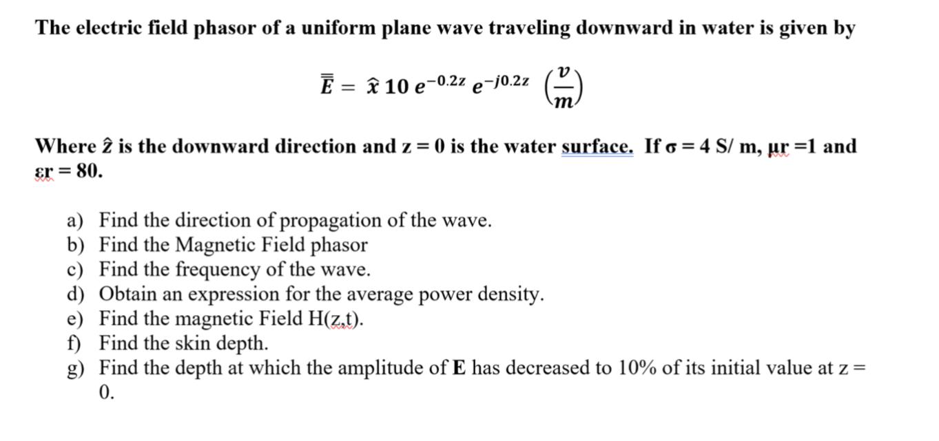 Solved The Electric Field Phasor Of A Uniform Plane Wave Chegg Com