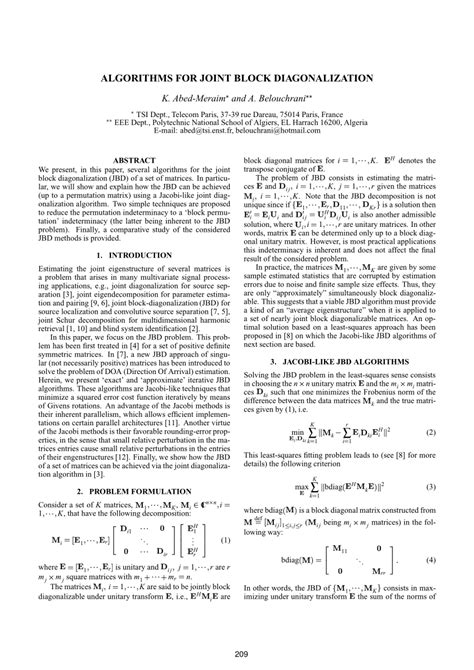 Pdf Algorithms For Joint Block Diagonalization