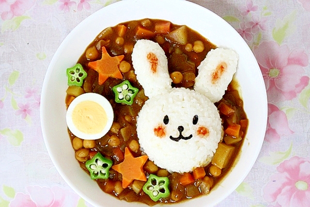 連載 レシピブログ うさぎさんカレー わくわくキャラクター弁当