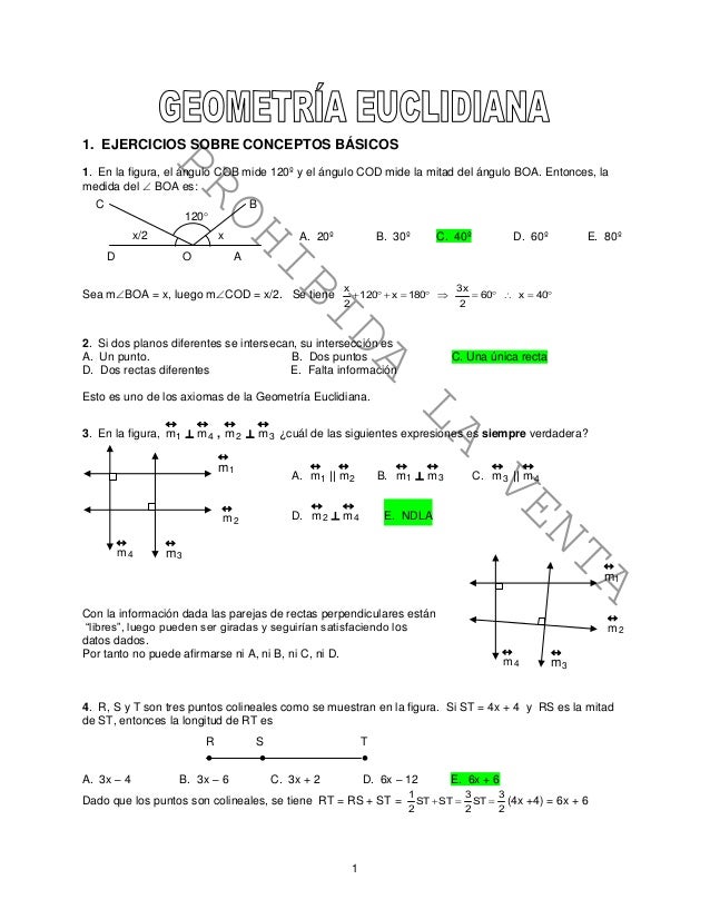 Ejercicios Sobre Conceptos Basicos Geometria Euclidiana