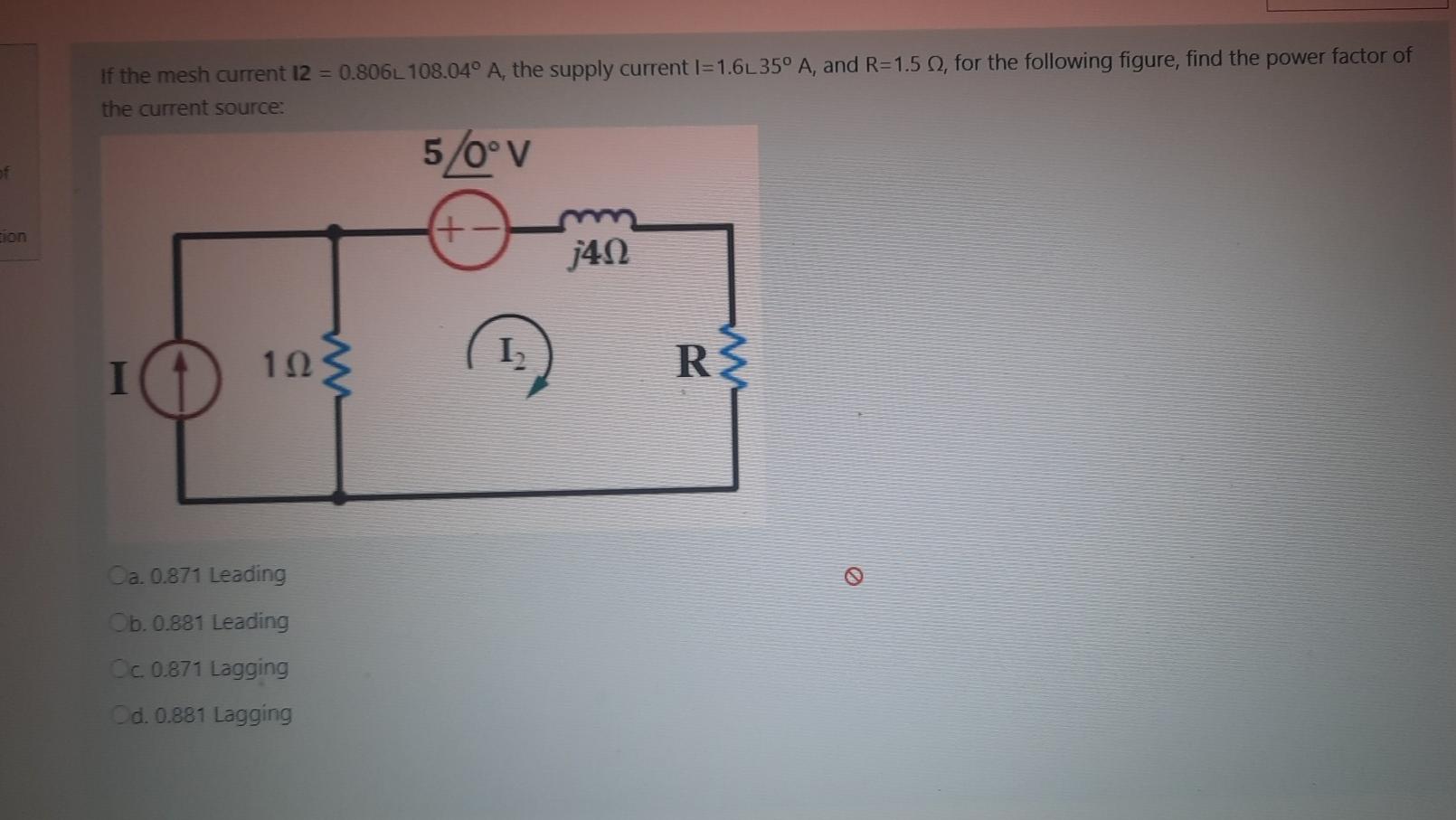 Solved If The Mesh Current 12 0 806l 108 04º A The Sup Chegg Com