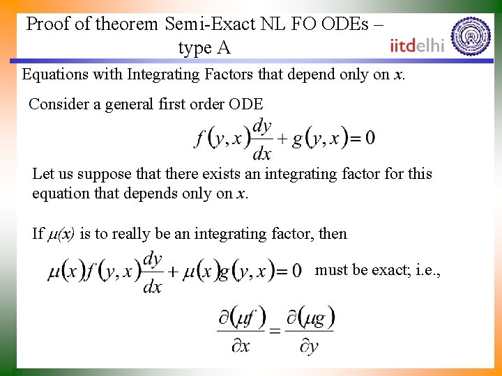 First Order Semiexact Nonlinear Odes P M V