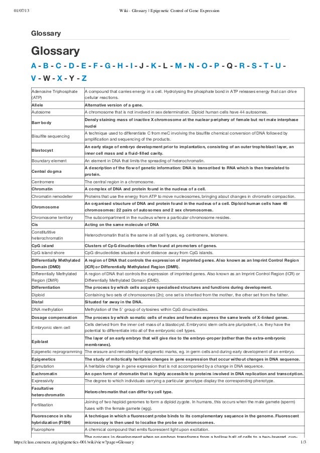 Wiki Glossary Epigenetic Control Of Gene Expression