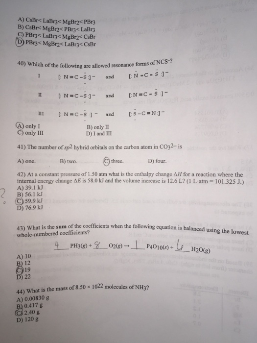 Solved 40 Which Of The Following Are Allowed Resonance F Chegg Com