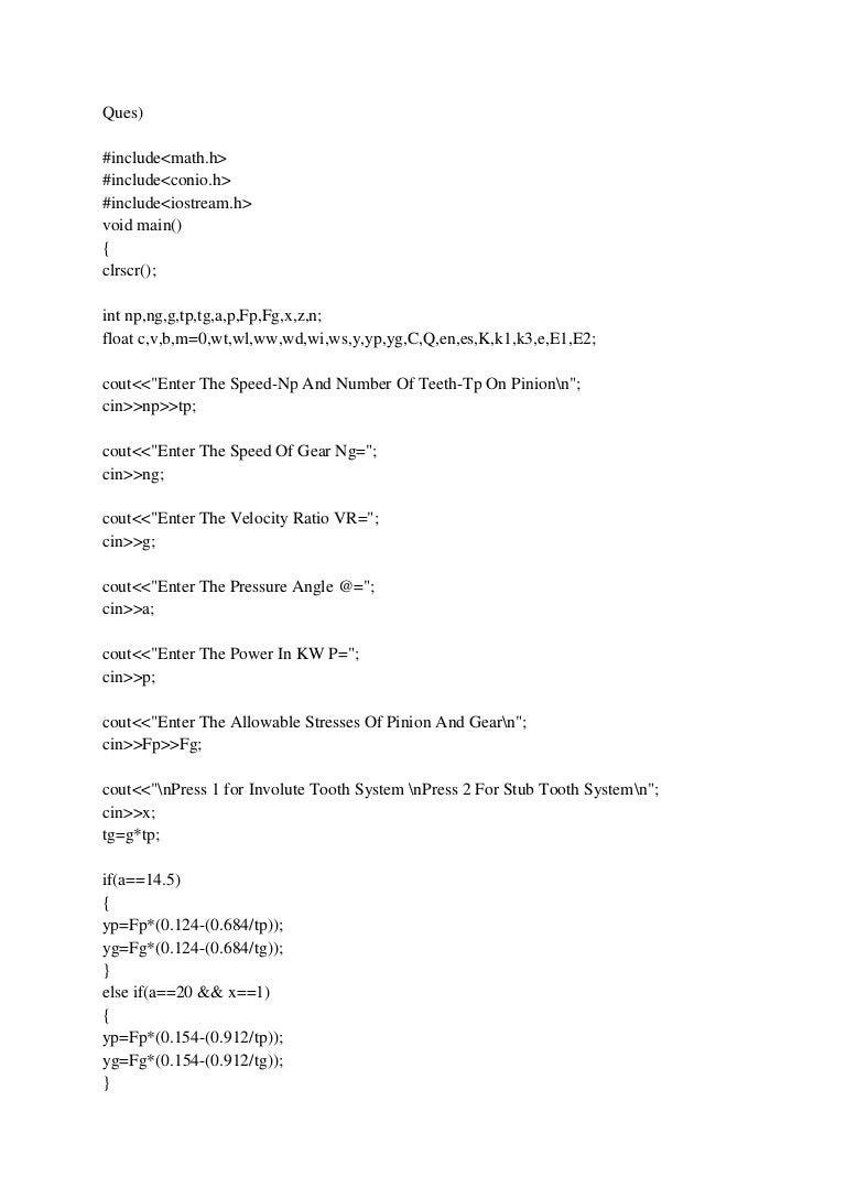 Spur Gear 2 Designing And Numerical Solution By C And C Languages