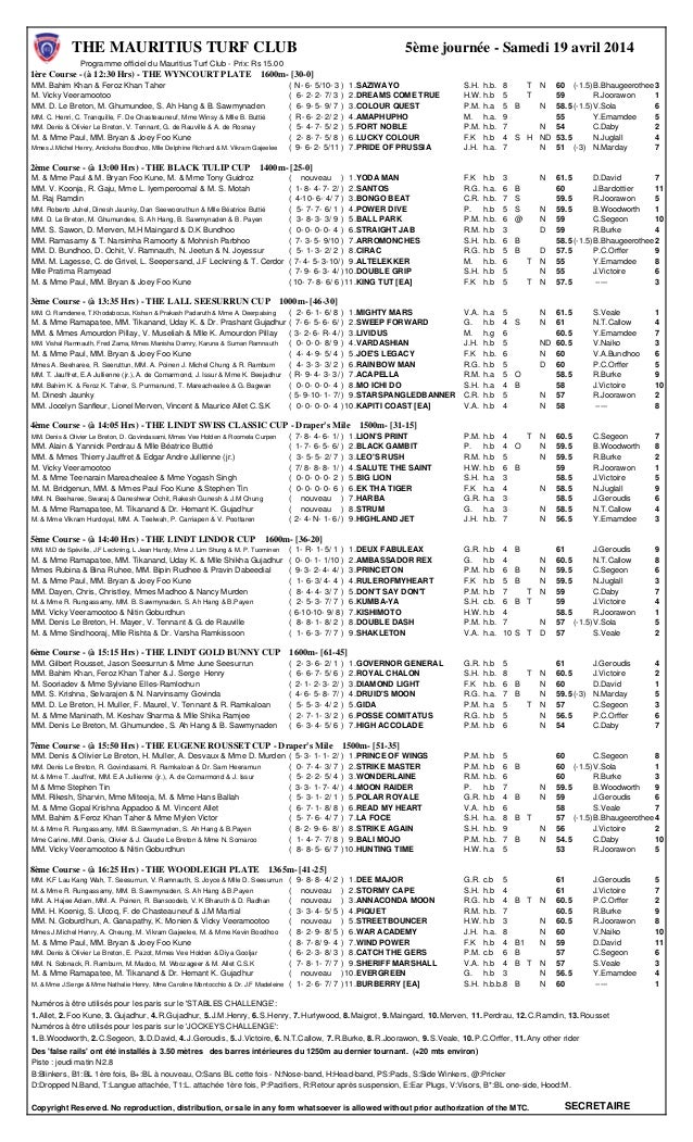 Programme Lecourse 5eme Journee Samedi 19 04 14