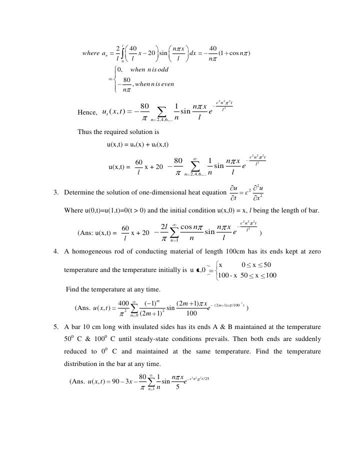 WsWeatherpng x ;T ؙA { 5 XK ml $Y F "Y Ɩ P Ȟ % ("$ ~ > w > } 9着 D M 8 w uuS o _``;. Title1_ K _ K BOOKMOBI³Y %˜ , 3ð Ö A‰ HI O{ W> ^˜ e˜ lˆ s› z– ü ‰Q ‘L —û"Ÿˆ$¦ý&®€(µý*½ ,ÄÕÌ 0Ó2Ú´4â 6éœ8îŽî. C ne −n 2π2α2t/L sin nπx L where the c n are determined uniquely by u(x,0) = X∞ n=1 c n sin nπx L In this case L = 1 and α2 = 100 u(x,0) is already in the form of a sine series, where c 2 = 1, c 5 = −1, and the other c n are 0 Therefore u(x,t) = c 2e−2 2π2100t/1 2sin 2πx 1 c 5e−5 2π 100t/12 sin 5πx 1 = e−400π2t sin.