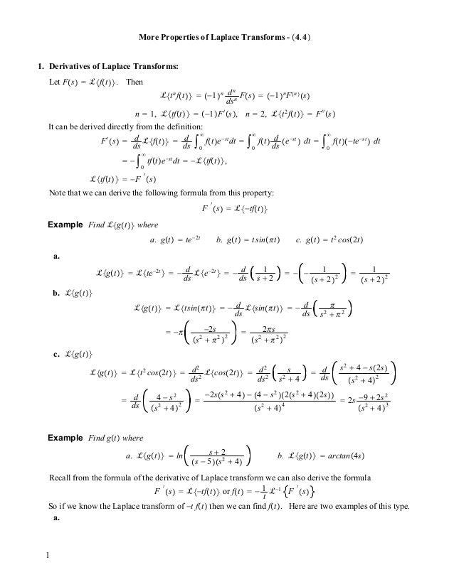 Definition 7 1 1 Laplace Transform Let F Be A Function Defined For T Z 0 Then The Homeworklib