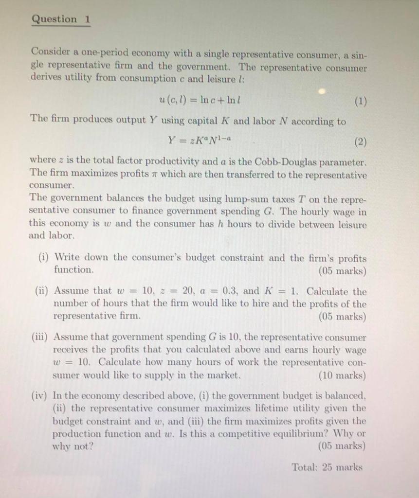 Solved Question 1 Consider A One Period Economy With A Si Chegg Com