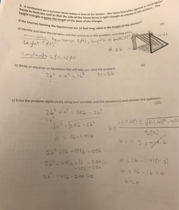 Solved Contestant On A Survival Show Makes A Lean To For Chegg Com